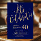 Este fabuloso convite de festas de aniversário de 40 anos azul-marinho, que diz "Celebrado de Vamos!" numa letra moderna em ouro seria perfeito para celebrar o homem na aniversário de 40 anos da sua vida. Este convite é moderno, na moda, moderno e contemporâneo. Para ver seus convites personalizados, selecione "Personalizar este modelo" e digite suas informações. É super fácil!