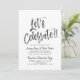 Depois do grande dia e do troca de alianças, convide seus convidados mais honrados para uma celebração. Este convite apresenta as palavras "Vamos Celebrar" em letras de caligrafia sofisticada. Ao lado disso, há um par de alianças de casamento. Abaixo deste gráfico exclusivo, há um espaço para suas próprias palavras e informações para o seu evento pós-casamento.