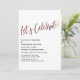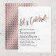 Para o cabeçalho destes cartões em negrito, usei uma fonte manuscrita casual e moderna para criar uma sobreposição de tipografia gráfica que diz "Vamos Celebrar". Esta imagem foi adornada com um efeito de folha de ouro rosa metálico falso e suave para uma atmosfera comemorativa. Preencha os espaços em branco do modelo com seus detalhes para personalizar o design. Todas as camadas permaneceram desbloqueadas para que você também possa clicar para personalizar ainda mais e reposicionar o texto ou até mesmo alterar tamanhos ou fontes. O fundo foi coberto com um padrão retrô repetitivo inspirado no Marrocos que foi adornado com o mesmo efeito de ouro rosa. Por favor, não hesite em entrar em contato para obter ajuda com a personalização.