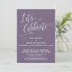 Este cartão simples e elegante foi projetado para convidar seus amigos e familiares para o seu casamento ou festa realizada algum tempo após a própria cerimônia de casamento. A base é um fundo sólido - um roxo empoeirado que a Pantone se refere como "compota de uva" - que pode ser alterado para qualquer cor que você goste. Usando uma fonte de roteiro moderna e giratória, criei uma sobreposição gráfica de tipografia que diz "Vamos Celebrar" com redemoinhos e curvas extravagantes. A mesma fonte foi usada para criar a palavra "amor", que foi colocada, bem grande, no verso. Use os campos de modelo fornecidos para atualizar o design. Se você quiser personalizar ainda mais, movendo quaisquer detalhes para outro lugar, alterando as fontes ou tamanhos, basta clicar no link fornecido e editar o design como desejar. Adicionei todas as camadas separadamente e elas estão desbloqueadas para lhe dar total controle de design.