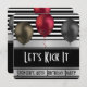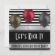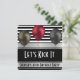 Um convite de aniversário divertido e elegante com riscas e balões negros, brancos e prateados. A frente tem a mensagem, "Kick It" (Escolha o Vamos), adicione nome e idade. O verso tem personalização linha a linha.
