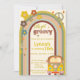 O vamos fica ranzinza! Um convite para festas de aniversário divertida com cores brilhantes, um arco de música e tipografia inspirada na prática.