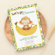 Celebre o dia especial do seu pequeno, em estilo extremamente adorável, com o nosso "Convite de Aniversário para Vão Bananas de Vamos"! Projetado com um macaco brincalhão sentado sobre uma grande banana e bordado por um encantador padrão da selva verde, este convite é certamente para dar um tom divertido para a festa de aniversário do seu filho. Facilmente personalizável, você pode adicionar o nome do seu filho, os detalhes da festa e alterar os esquemas de cor da sua parte. clique em personalizar e alterar o plano de fundo para alterar o tema de cor do convite.