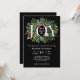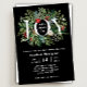 Vamos Compartilhe os Convites para Bebê Feriados de Alegria com a palavra, JOY contra florais ricos de Natal e um fundo negro