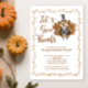 Convite para banquete de Ação de Graças, com um peru doce com "obrigados de vamos" em letra manuscrita, com um quadro de folha bonito, em fundo branco. Sacudir nosso Convite de Ação de Graças para ver uma correspondência de volta para um toque especial extra.
