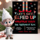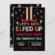 O vamos vai ser alimentado na festa de Natal. Possui pernas Elf, fontes desenhadas à mão, martinis e flocos de neve em cores de aqua, vermelho e pêssego.