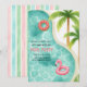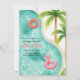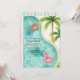 Crie ondas com este adorável convite de aniversário de festa de piscina em aquarela! Com uma piscina curva pintada à mão, palmeiras tropicais, bóias de flamingo rosa e listras suaves em aquarela pastel, este design é perfeito para uma divertida celebração de verão. Personalize com o nome da criança, data da festa, horário e endereço para um convite único.