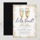 Este é um Convite de festas elegante e na moda com Véspera de ano novo apresentando um par de óculos de champanhe de aquarela, uma borda de ouro e um chamado para seus convidados para comemorar a aurora do novo ano com "Vamos brindar!" em uma letra moderna. Atualize facilmente os detalhes da parte na placa usando o modelo fornecido. Entre em contato com o designer para fazer perguntas ou problemas relacionados a este design ou a produtos correspondentes.