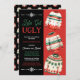 O Convite de festas de Natal "Vamos Feio" apresenta um trio de suéteres de Natal feios na frente sobre um fundo vermelho-céu no lado direito. O lado esquerdo apresenta os detalhes de sua celebração em vermelho, branco e verde-real com gráficos divisores de neve em cima e em baixo — todos em um fundo preto e negro ousado. As costas mostram um padrão repetido de suéteres feios de férias e sagrados e bagas em fundo preto. Os suéteres ostentam uma variedade de designs festivos e peculiares, capturando o espírito divertido e excêntrico da época de férias. A legenda do convite, "Vamos fica tonto", é exibida em frente com um casal de fontes atraentes. Este design de retrô divertido agradará aos seus destinatários! Design composto por Designs Holiday Hearts.