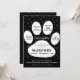 Um convite de aniversário criativo com tema de cachorro, apresentando um grande design de pata. O texto inclui frases divertidas como "Vamos Festar", juntamente com detalhes do evento, como data, hora, local e uma nota para trazer os animais de estimação (filhotes de pelo). O design convida os convidados a celebrar o dia especial do Murphey de uma maneira divertida e festiva.