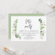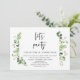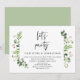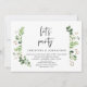 Modelo de convite de casamento com tema de folhas verdes de verão, escrito em preto moderno, (vamos festejar). É perfeito para o seu casamento às escondidas / festa de celebração pós-casamento. Adicione seus detalhes em fonte preta correspondente.