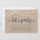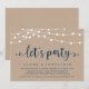 Lindas Luzes de Corda de Fazenda Rústica Moderna e Linda, fonte de letra em azul marinho em fundo de papel kraft, Anúncio de Fuga de Casamento, cartão de convite (Vamos Festejar). Isto é perfeito para a recepção do seu casamento e festa de celebração pós-casamento. Adicione seus detalhes na fonte / letra correspondente.