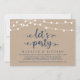 Lindas Luzes de Corda de Fazenda Rústica Moderna, fonte de letra azul-marinho em fundo de papel kraft, Anúncio de Fuga para Casamento, cartão de convite (Vamos Festejar). Isto é perfeito para o seu casamento e festa de celebração pós-casamento. Adicione seus detalhes na fonte / letra correspondente.
