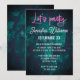 Convite divertido e legal em neon rosa brilhante para os foliões. Rosa, tipografia branca e folhas de folhagem verde sombria.