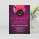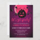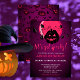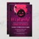 Design de Halloween moderno para festa de aniversário espetacular com abóbora assustadora sobre fundo de lua rosa púrpura e abóboras e morcegos voadores nas costas. Uma design neutra em termos de gênero, perfeita para as comemorações de outubro! A modelo de festa de aniversário é fácil de personalizar.