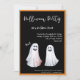 Um casal de fantasmas a divertir-se e a convidá-lo para uma festa de Halloween incrível. onde o tong está na bochecha, eles pretendem ser revestidos com folhas. Ha. Ha. Ha. O convite pode ser personalizado e é apropriado para crianças ou adultos.