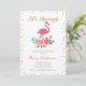 Vamos Flamingle Chá de panela, com flamingo, floral e confete de ouro.