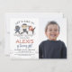 Prepare-se para uma comemoração repleta de ações com nosso convite de aniversário ninja. Esse design dinâmico mostra uma ilustração cativa da aquarela de três pequenos ninjas, cada um tocando sua pose favorita de artes marciais, emergindo de uma explosão de fumaça ou flutuando em uma nuvem. Personalize o convite adicionando uma foto personalizada do aniversariante no lado direito. A frase brincalhona "Kick It!" acima dos ninjas combina o conceito de sair com o mundo das artes marciais. O convite convoca todos os ninjas a se juntarem à comemoração, com o nome do aniversariante em letras vermelhas e a idade em roteiro azul divertido. Os detalhes do evento são apresentados em tipografia simples e limpa, com estrelas ninja a enquadrar as importantes informações de data e hora. Sacudir a carta para revelar um padrão de nuvens e armas de estrela ninja. Perfeito para 4 a 10 anos, este design energético dá o tom para uma festa de aniversário empolgante e memorável que promete ação, aventura e muita diversão. Personalize este convite para refletir os detalhes específicos da sua parte. Sinta-se à vontade para me enviar qualquer pergunta, apenas por favor note que não posso modificar uma ordem existente. Procure nossa coleção para mais convites para aniversários!