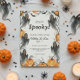 Prepare-se para uma noite espetacular! Nosso convite para festas de Halloween é a maneira perfeita de convocar seus fantasmas e goblins para uma noite de diversão. Apresentando um design incrivelmente bom com árvores tortuosas de aquarela, fantasmas pretos, morcegos e sorrindo Jack o'lanterns. Quer você esteja planejando um concurso de fantasia, uma casa assombrada, ou uma mistura de monstros, nosso convite dá o tom perfeito. Não perca a melhor festa de Halloween do ano — envie seus convites hoje e se prepare para assustar um pouco! Criado pela imprensa simplesmente de farmácia.