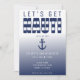 Convite "vamos get nauti" com faixa branca e azul para solteiro/festa de solteira. Personalize com seu próprio texto.