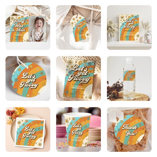 Convites Vamos Obter o Groovy Retro Festa do primeiro anive