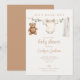 Este convite de chá de bebê fofo apresenta roupas de bebê em um varal e pode ser personalizado com seus detalhes em uma tipografia elegante. Criado por Thisisnotme©