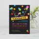 Os chifres dourados brilhantes com pontos brilhantes de cor neste divertido convite de férias.