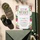 O tema do chá de panela de Natal "Vamos a ser Feliz antes de se casar" com flores vermelhas e folhas verdes de cor d'água com sotaques de ouro, este design é perfeito para um chá de panela de férias. A elegante tipografia acrescenta um toque moderno a este chá de panela de Natal. Personalize o texto para ajustado dos detalhes do evento e torná-lo todo seu.