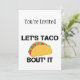 Um jeito engraçado de dizer, vamos fala sobre isso. Apresentando um taco alegre! Então, ei, VAMOS TACO, em vez disso. Parece mais gratificante, não é?