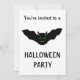 Este convite de festa assustador do Halloween mostra um morcego vampiro assustador com o rosto de um gato. O morcego voa com asas estendidas e tem os olhos mau verdes de um gato assustador e algumas presas brancas assustadoras. Esta quimera assustadora é a criatura perfeita para um Halloween assombroso. Há texto personalizável no verso para que você possa personalizar este convite.