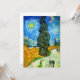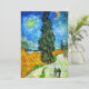 Cartão com a Pintor de Petróleo Road de Vincent van Gogh com Cypress e Star (1890), também conhecida como Country Road in Provence by Night. Pessoas caminham ao longo de uma estrada que passa por uma bela ciprestes sob um céu azul noturno com lua amarela e estrelas. Um presente fantástico para fãs de Impressionismo Poste e arte holandesa.