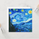 Cartão com a pintura a óleo de Vincent van Gogh na Noite Estrelada (1889). Inspirada pela sua estadia num asilo, a arte representa uma aldeia debaixo de um céu noturno de lua azul e amarela e estrelas. Um presente de excelente para fãs do Poste-impressionismo e da arte holandesa.