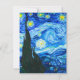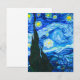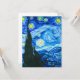 Cartão com a pintura a óleo de Vincent van Gogh na Noite Estrelada (1889). Inspirada pela sua estadia num asilo, a arte representa uma aldeia debaixo de um céu noturno de lua azul e amarela e estrelas. Um presente de excelente para fãs do Poste-impressionismo e da arte holandesa.