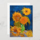 Cartão com o Vaso de Vincent van Gogh com Cinco Girassóis (1888). A vida ainda mostra cinco lindos girassóis em um vaso verde. Um presente de excelente para fãs do Poste-impressionismo e da arte holandesa.
