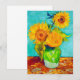 Cartão com a pintura vitalícia de Vincent van Gogh, que representa um buquê de girassóis num vaso verde. Parte da sua versão inicial na série Arles Sunflower. Um presente de excelente para fãs de pinturas florais, Impressionismo Postado e arte holandesa.
