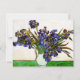 Convites de Van Gogh Vase de irlandeses. Pintura a óleo na canvas de 1890. Uma das lindas pinturas de vaso e flor de Van Gogh capturando as púrpura pesadas de íris recém cortados. Tal como as pinturas vitais de girassóis e papoilas de Van Gogh, o Irises num Vase captura um certo céu de Verão que adiciona vida e vibração às flores da íris. Um presente de excelente para fãs de Van Gogh, irlandeses, poste-impressionismo e pinturas de flores famosas.