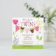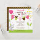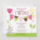 Comece o chá de fraldas dos gêmeos com o nosso vestido de bebê... com o convite de chá de fraldas para a combinação de gêmeos. Nosso convite para chás de fraldas múltiplos para gêmeas meninas apresenta um coelho bonito sentado em um gramado com flores rosa e amarelas com duas roupas de cama com verde limão rosa e casaco de bebê marrom. Coordenando bolinhas marrons e verdes limões de volta. Visite nosso compro por correspondência obrigado cartões de nota, autocolantes e selos de correio Os fatos para bebês são © Erin Bradley Designs