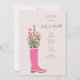 Celebrar a noiva com este charmoso chá de panela rústico. Um vaso de bota de borracha rosa, lúcido, cheio de flores silvestres estilizadas, cor-de-rosa e amarelas, é acentuado com trim de rosa claro nítida e tipografia moderna. Listras prateadas de ângulo de chuva através do design, adicionando um toque fresco e caprichoso que equilibra perfeitamente o estilo chic do país com a simplicidade moderna. Quer você esteja planejando uma reunião de jardim de primavera, um chá inspirado na fazenda, ou uma celebração floral rústica, este convite define o tom perfeito. Personalize com seus detalhes de evento para um design que seja único e alegre como o próprio dia. As cores incluem sotaques cor-de-rosa, brancos, amarelos e prateados.