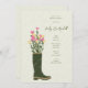 Celebrar a noiva com este charmoso chá de panela rústico. Um vaso de bota de borracha verde, lúcido, cheio de flores silvestres estilizadas, rosa e amarelas, é acentuado por um trim amarelo nítido e pela tipografia moderna. Listras prateadas de ângulo de chuva através do design, adicionando um toque fresco e caprichoso que equilibra perfeitamente o estilo chic do país com a simplicidade moderna. Quer você esteja planejando uma reunião de jardim de primavera, um chá inspirado na fazenda, ou uma celebração floral rústica, este convite define o tom perfeito. Personalize com seus detalhes de evento para um design que seja único e alegre como o próprio dia. As cores incluem os sotaques verde-exército, amarelo-ouro, rosa, amarelo e prateado.