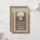 Convites de festa de aniversário de casamento com luzes românticas, vaso de vidro, flores de respiro de bebê, renda, aniagem e chave esqueleto vintage.