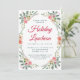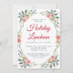 Um convite elegante para o almoço de Natal, com buquês de aquarela de flores cor rosa e corais em verde de inverno, um bonito roteiro vermelho e uma simples tipografia moderna verde-escura. Você pode personalizar o tipo de evento (almoço de férias, brunch, festa de chá, festa de aniversário, chá de panela etc.).