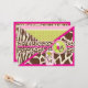 O macaco selvagem e do divertimento que penduram na videira da selva e um pacifier selvagem com zebra, girafa, leopardo, e retalhos da chita imprimem com convite do chá de fraldas das fitas da guarnição do laço 3D-look. As cores são rosa, verdes, e marrons.
