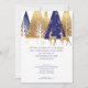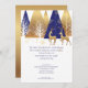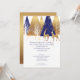 Convite de festas de Natal | Árvores de Natal reais, azuis e douradas, simples, com dois veados de ouro. Flocos de neve simples espalhados - adequados para os grupos empresariais e pessoais.