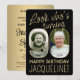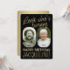 Olha quem está fazendo 90! Convide a família e os amigos para uma elegante comemoração de 90 com convites de festas personalizados de 2 fotos. Imagens e textos neste modelo são simples de personalizar. (DICA DE IMAGEM: Uma maneira fácil de posicionar uma foto exatamente como você deseja é recortá-la antes de carregá-la no site do Zazzle. Se você precisar de ajuda adicional, por favor, me envie a mensagem :) O design preto e dourado apresenta duas fotos de sua escolha, a caligrafia moderna e a tipografia do deco da arte da na moda. Observe que o ouro é impresso a cor, não a folha metálica. A design única e neutra em termos de gênero também é adequada para um homem ou para uma mulher. Feliz aniversário de 90!