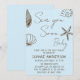 Celebre sua pequena onda no caminho com este convite de chá de bebê elegante boêmio costeiro, apresentando ilustrações de conchas desenhadas à mão em tons marrons neutros e quentes. A escrita moderna “Sea You Soon Baby” (Nos vemos em breve, bebê) combinada com arte minimalista à beira-mar cria um design atemporal e elegante, perfeito para celebrações inspiradas na praia.