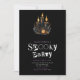 Este convite para o Halloween estabelece um tom incrivelmente elegante com o seu fundo preto e as palavras "Spooky Party" numa revista assustadora ou letra cortada de horror em branco e roxo. A fonte adiciona um toque assustador, perfeito para uma celebração de Dia das Bruxas. No centro do convite estão três velas pretas, cercadas por folhagem e ornamentos pretos e dourados, criando um design místico e atmosférico. O esquema de cores de preto, branco, roxo e ouro cria um aspecto impressionante e atmosférico que é perfeito para uma celebração do Dia das Bruxas com um toque de elegância. As velas negras acrescentam um senso de mistério e intrigação ao convite, enquanto a folhagem e os ornamentos preto-e-ouro acrescentam um toque de glamour. Juntos, esses elementos criam um design que é simultaneamente estranho e sofisticado, definindo o palco para uma festa memorável de Halloween. O verso do convite prossegue o tema com seu elegante fundo negro, garantindo um olhar coeso e na moda. Quer você esteja hospedando uma festa de fantasia sofisticada ou uma misteriosa bola de mascarada, este convite é para dar o tom perfeito para sua celebração de Dia das Bruxas. Convide seus convidados para se juntarem a vocês por uma noite de encanto e mistério com este convite maravilhoso da festa de Halloween.