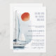 Velejando para o futuro Juntos com o Código QR Convite Náutico para Casamento... Nosso convite náutico para casamento temático apresenta um veleiro a aquarela planando sob um sol laranja chamando a atenção para seu texto de convite definido em um roteiro de caligrafia moderno combinado com a serif clássica e a tipografia sans serif. A citação inspiradora "Navegando no Futuro Juntos" define o tema para sua sincera cerimônia de casamento. No verso do convite está o código QR do seu site de casamento, bem como o URL do site, permitindo que seus convidados facilmente RSVP online e visualizem todos os detalhes normalmente enviados em um pacote de casamento. O exemplo de código QR e todo texto de exemplo (além dos elementos de caligrafia) podem ser facilmente revisados com suas próprias informações sobre o modelo de personalização.