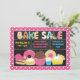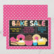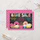 Design de Venda de Bolos Divertida na Escola de Verão com fundo de bolinhas rosa