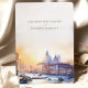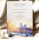 Capture o romance de Veneza com este convite encantador "Salve a Data", com uma vista aquosa dos canais icônicos da cidade no pôr do sol. Com matizes ouros iluminando as famosas cúpulas venezianas e gondolas a derivarem ao longo da água, esta design evoca a beleza e o encanto do eterno de Veneza. Perfeito para um casamento de destino ou uma celebração elegante e romântica, este convite convida seus convidados a se juntar a vocês em uma das cidades mais mágicas de Itália para um evento inesquecível.