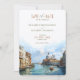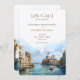 Aproxime-se do romance de Veneza com nosso convite "Veneziano Elegance Waterfront". Este convite é uma janela para as vias navegáveis serenas de Veneza, mostrando a majestosa Basilica di Papais noeis Maria della Salute ao longo do Grande Canal. Criada em requintada aquarela, as tons de azure e ocre captam a reflexão do céu veneziano e a arquitetura na superfície da água. A delicada escrita de corais e a tipografia do carvão refletem a arte e a sofisticação de um casamento italiano. Este "Salve-a-Data" é um precursor perfeito de um casamento que promete o encantamento e o esplendor de Veneza.